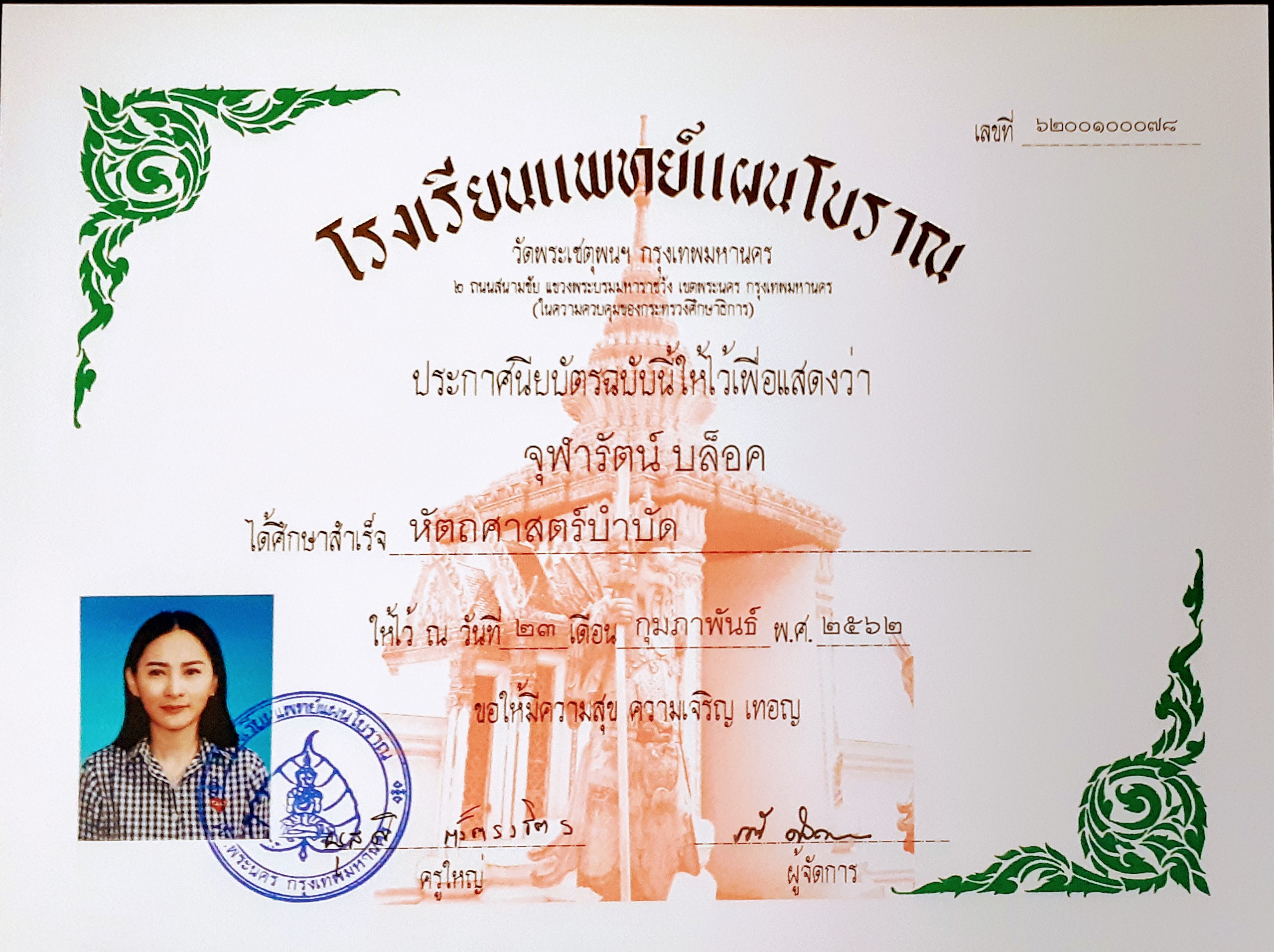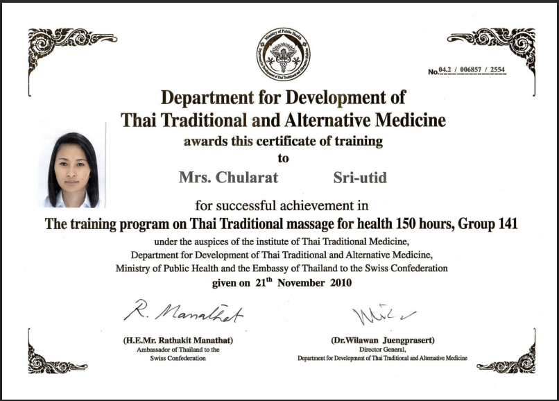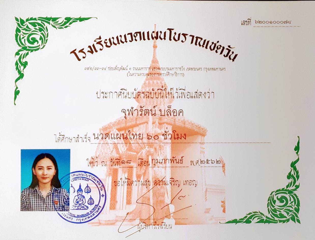 Diplome unserer Masseurinen der führenden Ausbildungs Institute in Thailand wie das Wat Pho Bangkok – Wikipedia Wat Pho in Bangkok.